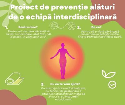 Proiect nou de prevenție, cu sprijinul unei echipe interdisciplinare: kinetoterapeut, medic nutriționist și psihoterapeut.